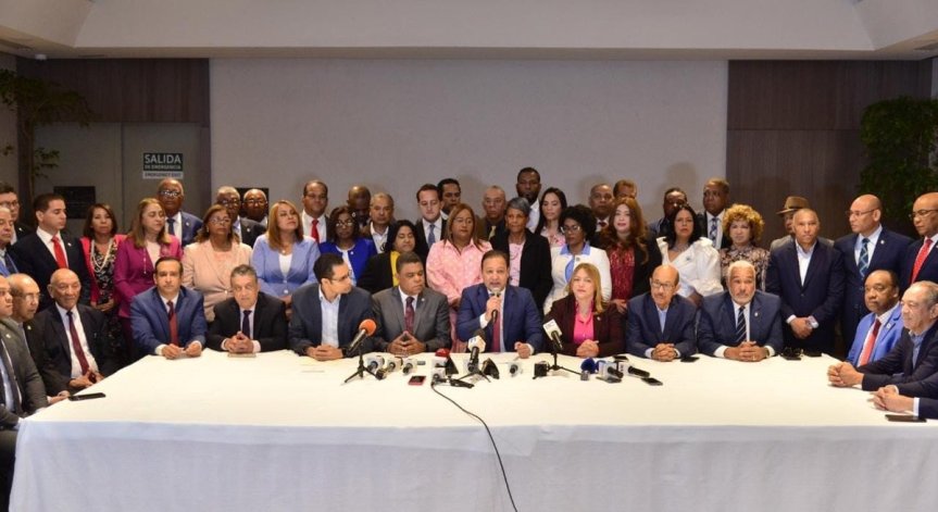La pieza fue entregada en manos del vocero del bloque de diputados del PLD, Juan Julio Campos, durante un acto que contó con la presencia mayoritaria del bloque de diputados del PLD, la cual es iniciativa de Abel Martínez, también expresidente de la Cámara de Diputados.