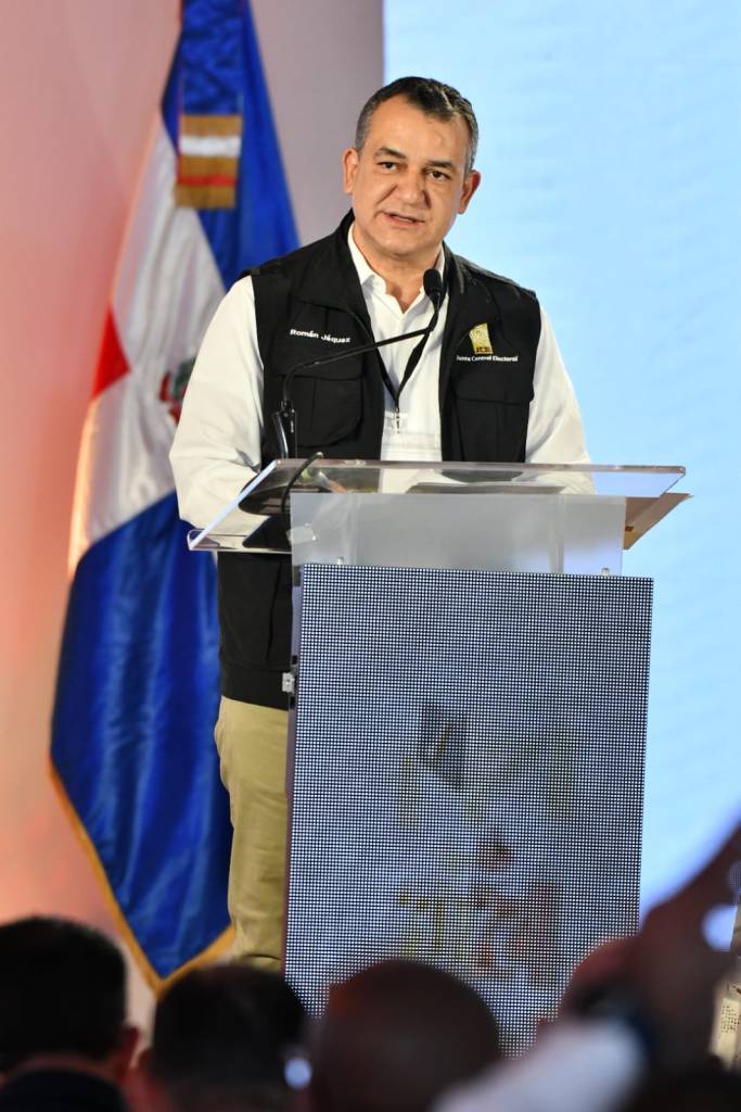 El presidente de la JCE, Román Andrés Jáquez Liranzo, en compañía de los miembros titulares Rafael Armando Vallejo Santelises, Dolores Fernández Sánchez, Patricia Lorenzo Paniagua y Samir Chami Isa, recordó que esta disposición se establece en apego al artículo 236 de la Ley 20-23 del Régimen Electoral.