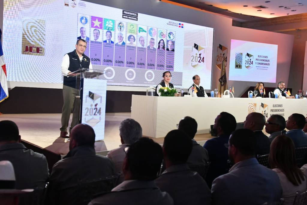 “Igualmente, resaltamos la labor patriótica de 91,460 funcionarios y funcionarias de los colegios electorales que en estos instantes continúan distribuidos en toda la geografía nacional y el exterior realizando el escrutinio”, dijo Jáquez.