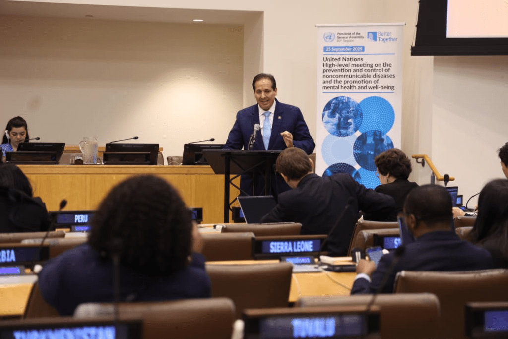 Nueva York. – En la reunión de alto nivel de la Asamblea General de las Naciones Unidas (ONU) sobre la prevención y el control de las Enfermedades no Transmisibles (ENT) y la promoción de la salud mental, el Ministro de Salud, Víctor Atallah destacó que República Dominicana trabaja en el fortalecimiento de estas y en la reducción de la mortalidad prematura mediante la implementación de políticas y programas integrales.