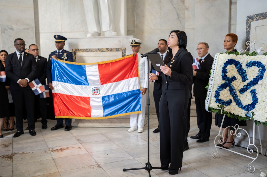 “Hoy vengo a proponerles un cambio de paradigma, una transformación profunda para que la sociedad perciba al Ministerio Público como: un Arquitecto de la Paz Social”, dijo la procuradora general al pronunciar un discurso durante un acto de izamiento de la Bandera Nacional en el Altar de la Patria con motivo del Día del Ministerio Público y del natalicio del patricio Francisco del Rosario Sánchez, primer procurador fiscal de la República Dominicana.