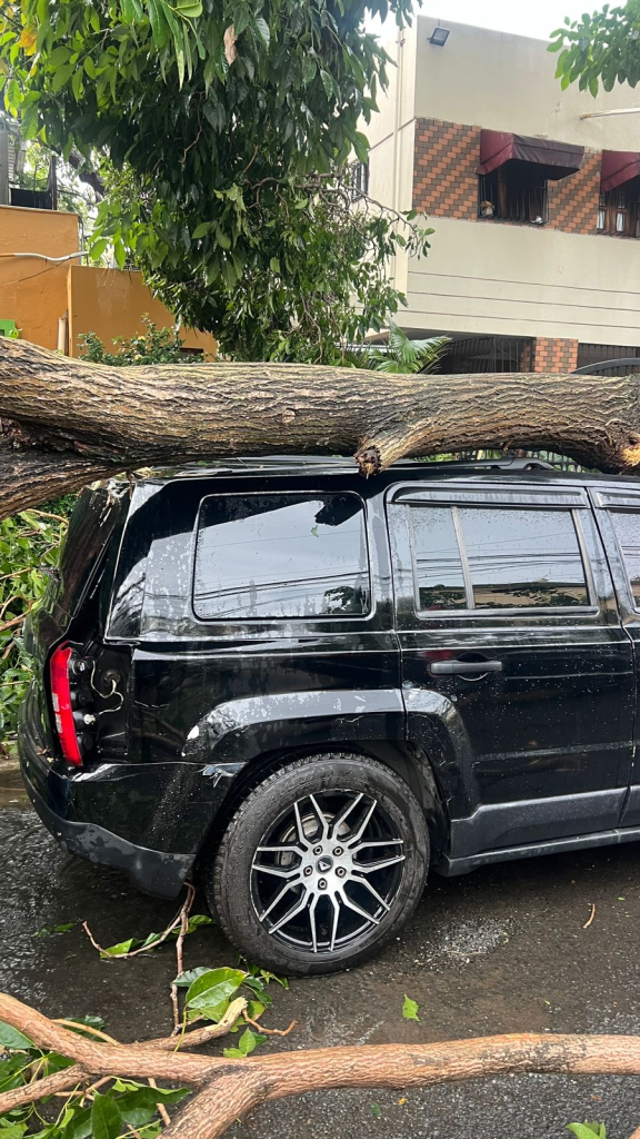 Santo Domingo.- Varios vehìculos resultaron afectados la tarde del lunes, debido a un vendaval que derribò arbòles en el Distrito Nacional.